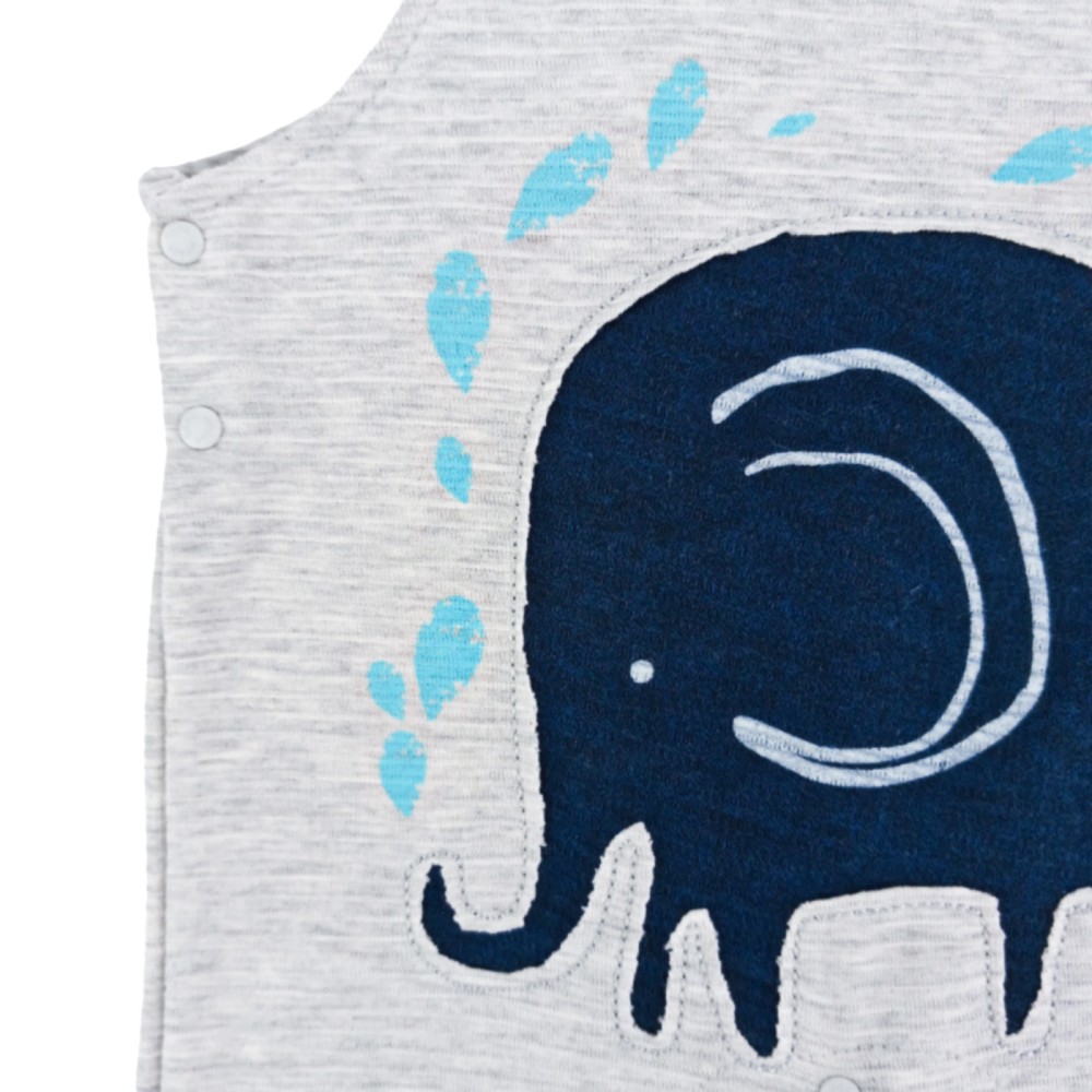 Το μεγάλο απλικαρισμένο ελεφαντάκι που πετάει σταγόνες νερού, διακοσμώντας χαριτωμένα τη βρεφική σαλοπέτα από ανάγλυφο ύφασμα.