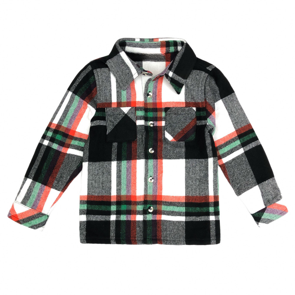 Χειμωνιάτικο casual σετ που αποτελείται από παιδικό πουκάμισο με τσέπες στο στήθος και μαύρο στενό τζιν με πλαϊνή τσέπη